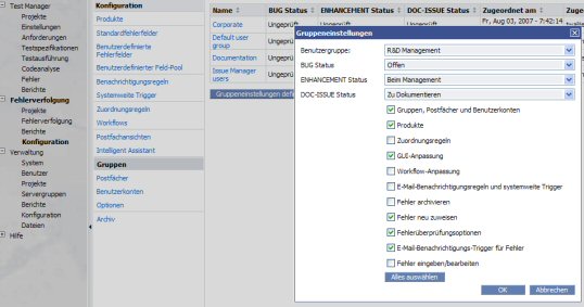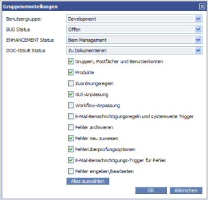 Hinweis: Bevor Sie Issue Manager-spezifische Gruppeneinstellungen in Issue Manager ändern können, muss die entsprechende Gruppe in SilkCentral erstellt worden sein.