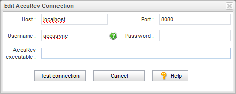 • Username and Password: Be sure to enter the username and password of the AccuSync user you created specifically for AccuSync. See Step 5: Create the AccuSync User for more information.