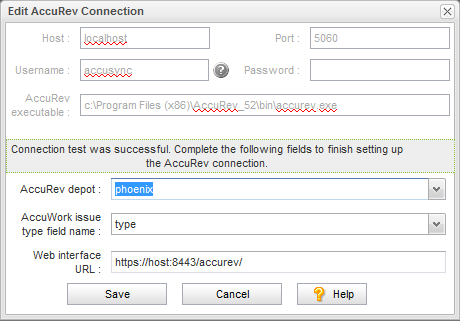 • Host and Port: These are the values that correspond to the AccuRev installation with which you will be synchronizing your ITS.